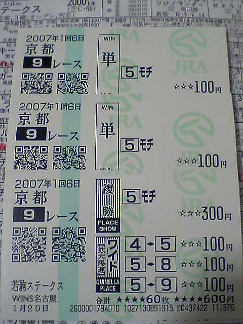 まさか、モチが粘りに粘るとは。 ※レース映像と成績表 ネタ馬券として購入した単勝が的中してしまい、 うれしいような悲しいような。 ちなみに、本線は、スズカコーズウェイからの馬単・3連単でした。 3レースしか購入しなかった(このレース+中山第4レース、京都第11レース) のもあるのですが、これでプラス収支確定。 もう、引退するまでついていくよw。いや、マジで。 出世レースとして知られるこの一戦を勝ったのですから、 ぜひGⅠを目指してほしいものです。 日本ダービーでもジャパンダートダービーでもいいから(個人的には後者を希望)。 |
