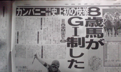 あるので、少し。 11月2日付の中日スポーツ、中央競馬面の記事です。 とりあえず、カンパニー&横山典弘、おめでとう、という感じの 内容なのですが、この中に、致命的な間違いが。 カンパニーは8歳での優勝ですが、カラジは10歳での優勝。 それも、10歳から12歳にかけての3連覇なのですが。 史上初でもなんでもないわけです。 なぜ、『平地GⅠでは初めて』という書き方ができない(しない、する気がない) のでしょうか。 平地と障害は、どちらも、JRAの中で行なわれているものなので、別物扱い することはないはずなのですが、どうも、競馬マスコミというものは、 障害戦は、日本の競馬には存在しないものとして考えたいようで。 記事を書いた大野英樹記者は、中央競馬面で『3連単大きい野で勝負』という 大穴狙いのコラムも書いていますが、競馬記者としての資質などと言った点で 大きな穴が開いていると言わざるを得ませんね。 まあ、もっと大きな問題は、他のマスコミも、中スポなどと同じスタンスを 取っているところばかりだということなのですが。 毎日.jp(ウェブ魚拓) SANSPO.COM(ウェブ魚拓) |