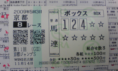 中日スポーツ:来年G2以下の賞金ダウン 格差明確、2歳G1はアップ 障害戦は、この記事で言うところの『格、重要性』が低いということですね。 そうですかそうですか。 ろくに宣伝もしない。未勝利や平場オープンは昼休み前に実施。重賞だって 第8・第9レースあたり。公式ホームページでもJ・GⅠ以外は『今週の注目レース』 のコーナーで紹介されない。J・GⅠの中山大障害だって、 もっともらしい理由("概要"の後半)をつけて、メインレースではなく 第10レースで行なわれる。 こんな状況では売り上げなど上がるわけもないし、そもそも、こんなバカなことを ずっと続けているのだから上げる気などもないので、どうにもなりませんね。 クラシックへ続く2・3歳のレースや、平地の大レースばかりが競馬ではなく、 そういったところで力を出せなかった馬が新たな環境で、埋もれていた適性、 才能を見出し、活躍していく。それもまた競馬。そういう場が、障害戦であり、 各地の地方競馬ではないのかと思います。 障害戦も、地方競馬も、コツをつかめば予想も楽だし、中央の訳のわからない 平地のレースに比べれば馬券も獲りやすかったりします。 もちろん、レースそのものも、しっかりと楽しめるようになりますし。 ◎エイシンボストン ○テイエムトッパズレ ▲エーシンディーエス △バトルブレーヴ ×ビコーフェザー ×クールジョイ 専門紙やスポーツ新聞の競馬面の本紙的な思考回路で考えれば、京都で 重賞2勝、前走も府中で逃げ切り勝ちのテイエムトッパズレなのでしょう。 実際、中日スポーツ本紙も、この馬に◎。 ただ、近走の好調さをそのまま信頼していいのかという気持ちがあります。 人気に応えるというよりは、人気薄の時に穴を開けるというイメージ。 多分、今回は上位人気に支持されるのでしょうが、気分良く先行することが できたときだけ力を出せるタイプなので外すのも難しいところ。 個人的には、本命評価はしたくありません。 前走は、好位を追走し、いい感じの手ごたえで4コーナーを抜けるも、そこから 失速してしまったエイシンボストン。落鉄もあったようですが、名手・西谷を もってしても敗因がつかめないのならば、あえて、もう一度狙ってみたいところ。 重賞で勝ち負けできる力の持ち主であるのは、春から夏にかけてのレースで 証明済み。 好位のインコースを取れそうないい枠も引いているし、何事も無ければ、 少なくとも、前走のような不可解な敗戦は無いでしょう。 あとは、横山義行への乗り替わりはプラスになってもマイナスにはならないし、 近走もオープンで好勝負、兄のエイシンニーザンをはじめとして、兄弟姉妹が キッチリと障害戦で結果を残している血統という面にも注目したい エーシンディーエス。 ピークだった昨年の夏ほどの力は出せていないものの、2走前の阪神ジャンプ ステークスのように、好位から中団あたりの位置をスムーズに追走できれば、 まだまだ見限れないバトルブレーヴ。 やはり気になるのは白浜ポジションの発動ということになってしまいますが、 早め早めに動ければ、直線に置き障害のあるこのレースであっても、末脚が 炸裂しそうなビコーフェザー。 年齢面もあって走っても走っても人気しないものの(障害戦では、年齢は気に することは無いんですが。3歳で京都ハイジャンプ、中山大障害を勝った テイエムドラゴンなどは例外中の例外だし)京都コースは得意にしており、 気がつけば上位に飛び込んできたという場面もありそうなクールジョイを。 《買い目》 ・馬連 ボックス ◎○▲ ながし ◎-△×× (11月14日23時30分頃追記) 馬連○‐▲的中。 堅めの馬券を少額でしたが、障害重賞を獲れたのは久しぶりな気がします。 ボックスにしておいて良かった。 好位集団の一角に付け、向正面あたりから楽な手ごたえで進出し、 4コーナー出口付近で気合を付けられると、2番手を大きく突き放して快勝した エーシンディーエス。重賞初挑戦でしたが、この強さには参りました。 本文でも書きましたが、兄のエイシンニーザンをはじめとして、入障した 兄弟姉妹は、しっかりと結果を残しているのが、この一族。やはり、 障害も血統なのかなという気がします。 取り口も安定していて、飛越も上手で、折り合いも問題ないこの馬。 暮れの大障害へ向かうのか、別路線を進むのか。鞍上は、引き続き義行なのか、 白浜などになるのか。 気になる点もいくつかありますが、今後も非常に楽しみです。 最後は一杯になり、どうにか2着は確保したテイエムトッパズレ。 スリーラスカルにハナを奪われ、中盤はドングラシアスに絡まれるという、 決して楽ではない展開でしたが、大崩れしなかったのは、地力強化と 見ていいのでは。まだまだ全幅の信頼は置けない人馬ですが、今後の 重賞戦線でもチェックは必要ですね。 オレ流◎のエイシンボストン。道中の位置取りなどは悪くは無かったのですが、 敗因を考えるとしたら、ペースや馬
