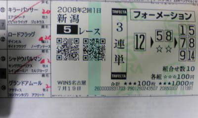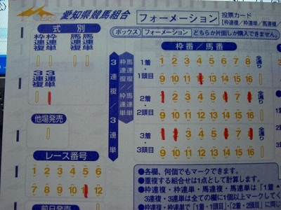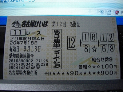 7月21日。ワシの競馬暦も6年目に突入することになります。 ちなみに、その時足を運んだのは、近所でありながらも一度も行った事が なかった名古屋競馬場でした。普通の人は、大体中央競馬の競馬場だと思うの ですが。 馬券の当たり外れに一喜一憂し、応援してきた馬や騎手の勝利に快哉を叫び、 前触れもなく突然やってくる悲しいニュースに涙する。馬券で勝てば祝勝会、 負けたら負けたで反省会と称して一杯引っ掛け、暇を見つけたり無理やり 作ったりして各地の競馬場に足を運ぶ。そんなこんなで5年の月日が流れました。 もう5年か、というのが最初に浮かんだことです。 相変わらず馬券は下手だし、そのくせ、ここぞという時にはガツンと 張ってみたり、3連勝式の馬券に手を出し大損したりもしたりと、成長の跡は 見られず、何やってんだと思うこともしばしばです。 始めた頃とは微妙に、競馬に対する考え方も変わりつつありますが、 どんなことがあっても、楽しいと感じることには今でも変わりはありません。 自分なりのスタンスで、無理せず取り組みたいものです。 閑話休題。 笠松開催も始まるので、普段なら、本場なり、土古場外なりに足を運んで 馬券を買うところなのですが、今年は、姫路競馬場での観戦になりそうです。 今開催を逃せば、次は来年度までチャンスがないとの事なので、これは 行かなければと思い、遠征を決めました。ただ、遠征費をケチって 青春18きっぷを使う予定なので、乗り継ぎや移動時間などには十分に 気をつけなければなりません。ていうか、新幹線乗れよ自分w。 ◎フィフティーワナー ○サカラート ▲エイシンロンバード △シンメイレグルス 地方勢が最後に馬券の対象となったのは、7年前のトウホーエンペラー(3着)。 このところは全くいいところなし。そして、今年も、残念ながらそうなって しまいそうな予感はあります。 ダートでは大崩れがなく、今年も3走して、勝ち馬とは差のないレースが できているフィフティーワナー。このメンバーであれば、ある程度先行して 好位集団につけてチャンスを窺うレースも十分に可能か。 馬場が渋るとあまり良くないような気がしないでもないサカラート。当日の馬場は そのあたりは問題ないだろうし、地方コースへの適性も問題なし。 斤量も背負い慣れてはいますが、休み明けがどう出るか。 昨年は3番追走から粘りこみ3着のエイシンロンバード。サカラート同様、 休み明けにやや不安は感じますが、揉まれずいい位置を取れる外枠を引いたので、 それなりのポジションを確保することは容易かも。道中がスローに落ち着いて しまうようならば、ユタカが地方コースで良く見せる早目の仕掛けで どうにかしてしまうということも見られるかも。 川崎へ転入後、2度の4着の後、2連勝でここに臨むシンメイレグルス。 岩手勢よりは、あえてこの馬に期待をかけてみたいところではありますが、 中央在籍時代には、右・左回りを問わず、坂のあるコースでは良績が非常に 少ない(デビュー2戦目・中山の黒竹賞1着以外はすべて掲示板を外す)という点が 不安で。 《買い目》 ・3連単 ◎○▲ボックス ◎○▲→◎○▲→△ 東海ステークスをまぐれとしか思えない勝ち方で制したヤマトマリオン。 左回りだし、その時のようにスローからの上がり勝負になりそうなここで 同様のレースをされてしまいそうという危惧もありますが、ダートでは 大したことのない馬だと思うので買いません。 (7月22日22時30分頃追記) ハズレ。 5時50分の始発電車に乗り4時間ほどかけて姫路へ移動 →せっかく来たんだから、ということで、姫路城(天守閣のみでしたが)を見学 →お城から競馬場まで徒歩で移動 →レース観戦後、新幹線+在来線で23時ごろに帰名 という流れでの、昨日の遠征。想像以上にハードなものになってしまいましたが、 楽しく過ごせました。レースを楽しみつつ、吉田勝彦アナの名調子を堪能し、 場内イベントのため来場していた兵庫県競馬のイメージガール・鹿谷弥生の かわいらしさにメロメロ(死語)になり、そして忘れてはいけない 姫路競馬場名物の『無料休憩所』も、しっかり体験してきました。 個人的には、この日最大の勝負レースだったこの一戦。 結構、ガツンと行ったのですが、見事に、3連単が1着2着4着でした_| ̄|○。 いや、これでいけるんじゃないかと思っていたんですけどね。 サカラートも久々の勝利。これで、秋以降のレースに弾みを付けることができるの かもしれません。今回は中舘が好騎乗を見せましたが、次走以降は、鞍上は どうなるんでしょう。 シンメイレグルスも手ごたえ十分で直線に向き、どうにかなるんじゃないかと 思いましたが(実際、モニターに向かって「的場!!」と絶叫)、坂で失速。 本文で書いた坂コースへの適性なのでしょうか。もともとは中央デビューとはいえ、 現在は地方所属。統一ダートグレードは、地方馬が頑張らないことには レースも馬券も面白くならないので、全力