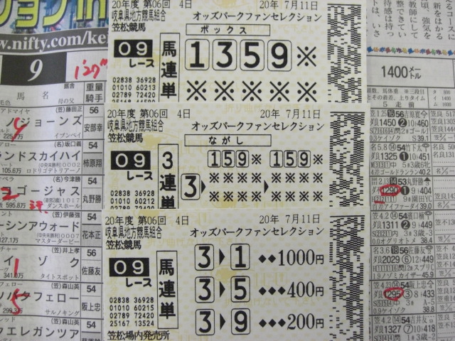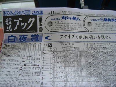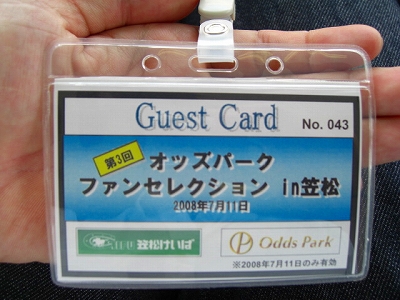 3つ前の記事で書いた『第3回オッズパークファンセレクションin笠松』の ファン投票なのですが、昨年に続き、今年も、プレゼント商品である ペア招待席が当選しました。まさか今年は当たらんだろう、と思っていたので、 正直なところ、少し驚いています。 当選通知のメールに住所氏名等を記入して返信した上で、当選が確定すると いうことだったので、速攻で返信。近いうちに招待状が届くでしょう。 休みを取って現地へ行こうと考えています。 回避しなければという話になりますが、ファン投票で1位と2位に選ばれた サチコゴージャスとリュウケンの初対戦は、ぜひ見てみたいものではあります。 ※追記:リュウケンと、ヴァイオリン(ファン投票9位)は、回避_| ̄|○。 前者の走りを結構楽しみにしていたんですが、しょうがない。 昨年の、当選通知メールをプリントアウトしたものを持参するという形から、 招待状の発送(郵送?メール?)への変更。メールよりは、招待状という形の ほうが、イベントに参加するという気分をより高めることになると思われ、 個人的にはいいのではと思います。 おそらくは、ユーホールと思われますが、今年はどれだけの当選者が、 招待席を利用するのでしょうか。昨年は、ド平日ということを割り引いても、 随分空席が多く、寂しさを感じたのですが…。 今年は、本場開催とともに、ばんえい帯広の場外発売も行なわれ、それに合わせた 各種イベントも行なわれるとのこと。1レースだけの発売なのか、リレー発売で ナイターレースをじっくり楽しめるのかはわかりませんが、こちらも、 あわせて楽しみたいものです。 ※追記:本場のレース終了後、リレー発売。 7月4日に、岐阜県地方競馬組合から、招待状が郵送されてきました。これで、 11日の笠松行きは、ほぼ100%確定です。 久々の本場開催を、楽しんでこようと思います。 |