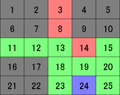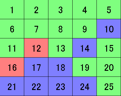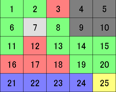 『アタック25』の系列局対抗・女性アナウンサー大会ですねw。 まあ、クイズも好きだし(学生時代は、クイズ研究会所属)、アタックも 好きだし(本選出場経験あり)、女子アナも好きだし、ということで。 あとは、アクセス数目当てですかねw。女子アナを取り上げると、 結構な数のアクセスがあるんですよ、これが。 今年の出場者は、以下の面々です。 赤:北海道テレビ 佐藤麻美 大野恵 緑:テレビ朝日 下平さやか 松尾由美子 白:名古屋テレビ 村瀬寛美 鈴木しおり 青:九州朝日放送 平川尚子 柴田恵理 アタックでのパネルの取り方の練習や、仲間内でアタック的なクイズを したいという方には最適なフリーウェア『パネルシミュレーター3』を 使って作成した、途中経過も挟み込みます。 オープニングの映像問題『ネズミ』をさくっと正解した緑・テレビ朝日が まずは真ん中・13番をゲット。続く『(窮鼠)猫(を噛む)』も答え、 定石どおり8番を埋め、縦にパネルを伸ばしますが、その次の『IKKO』を 正解した赤・北海道テレビが、3番ではなく12番を指名するボーンヘッド。 それを緑が見逃すはずもなく、すかさず次の問題で11番へ。 白・名古屋テレビの誤答のあと、赤が2連答で3~18番と続くラインを 作るも、緑も負けじと15番に入り、11~15番を埋めます。 ようやくアタックらしくなってきました。ここで10問経過。 横一線のラインが出来上がると、他の解答者は、連答できないと角を 取れないので、展開面では厳しくなります。取るパネルのない赤は やむを得ず20番へ。こうなると、緑には大きなチャンス。 角をめぐる戦いを『ダイコン』(春の七草のスズシロとは?)の正解で制し、 角・25番をゲット。その後、23番に入るも、お手つき。とはいえ、 圧倒的に緑が有利である状況には、変わりなし。20問経過。 この10問で4問お手つき、1問スルーという荒れた展開ですが、 緑は、きっちりと取るべき問題を取っています。 青・九州朝日放送も、『細雪』から6番を埋め、パネルを4枚に増やし、赤も 『イスタンブール』の正解で2枚追加しますが、ただ答えるだけでは 有利に試合を進められないのがアタックの恐ろしさ。緑が三択問題の 『城島茂』(SMAP・中居正広、V6・坂本准一、TOKIO・城島茂のうち、最年長は?) を正解し、1番へ。角を2枚押さえることができれば、まず負けることは ありません。 白、赤も1問ずつ正解しますが、攻撃が単発では、緑を切り崩すまでには至らず。 ここで青・九州朝日放送が待望の角・21番に入り、逆転に一縷の望みを つなぎます。次の問題で緑が正解して、さらに勢力範囲を拡大したところで、 パネルが20枚埋まり、大事な大事なアタックチャンスに突入。 ここまでの状況 赤は、アタックチャンスで1番を空けたいところ。しかし、その前に 9番、10番のどちらかに入らざるを得ず、角・5番を取られてしまう危険性も。 緑は、4番→21番と指名し、続けざまに21番を取ることができれば、 優勝が確定。 白は、7番→25番と指名し、右隅を埋めることが逆転に向けての最低条件 ではあるものの、ここまで29問経過した時点で正解3問、お手つきが4問。 出入りが激しすぎるクイズではどうなのか。 青は、9番→1番を指名し、1番に飛び込むのが、この場合の最善手か。 いずれにせよ、答え方次第で、まだまだどうなるかはわからない。 ここで、"ポルダー"に反応できた白が『オランダ』を正解、7番を埋め、 アタックチャンスの狙い目に25番を指名。 ※アタックチャンス後の配置 ここに入ることができれば、大逆転の可能性はあり。ただ、勝つためには さらに4連答して25番、10番、9番、4番を取る必要が。 ここまでの戦いぶりで、クイズの玄人でも非常に難しいこういったコンボを 決めることができるかどうかは、厳しいと言わざるを得ません。 結局、白は、千載一遇のチャンスを生かすことはできず。青が『ロンドン』 (世界初の地下鉄が開業した都市)を正解し、9番に入りライバルを追い詰めますが、 ここで見えたのが、緑の底力の違い。 『オマーン』(サッカー・ワールドカップ南アフリカ大会のアジア第3次予選で、 日本が、バーレーン、タイとともに戦う相手)、二択問題の『アリストテレス』 (師弟関係にあったプラトンとアリストテレス。弟子は?)、『舌先三寸』の 3ヒットコンボを決め、勝負あり。16枚のパネルを獲得し、見事 テレビ朝日チームの優勝です。 ※終了時のパネルの配置 『心臓が口からポンと出るくらい緊張しました。』と、キャリアを 積み重ねてきた下平に言わせるくらいの緊張感を見事乗り切り、 "充実のパリ・ミラノ9日間"ツアーを賭けたビジュアル問題に挑みます。 冗談抜きで、あの収録の場は、むちゃくちゃ緊張します。百戦錬磨の テレビ局のアナウンサーがそうなのだから、ワシら素人にいたっては、 緊張度合いの高さは、言わずもがな。そんなガチガチになっているであろう 参加者の気持ちを少しでもほぐそうとして、我らが児玉清が、収録途中に、 解答者に飴をプレゼントす