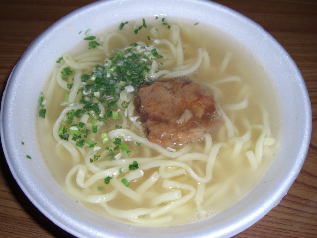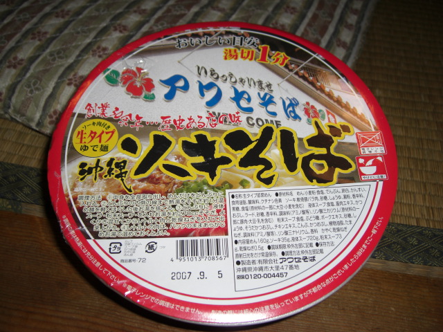 大好きな砂肝ジャーキーだとか、中学男子に大ウケしそうな名前の こんなお菓子(ストレートすぎ。下ネタはどうかと思うぞw)にも 心を惹かれましたが、とりあえず、これ一本に絞りました。 パッケージはこんな感じ。 真空パックされた麺は湯切りしてから。ソーキも付いてました。 カップ麺にしては、なかなか本格的。 ソーキそばは何度か食べたことがあるものの、残念ながら アワセそばの味を体験したことがないので、どう評価すれば いいのかという気はしますが、おいしかったです。 ソーキが1個しか入っていないのが残念といえば残念ですが、 麺もスープもソーキも、インスタントでこれくらいのものが出せれば、 十分すぎる出来じゃないかと思います。 |